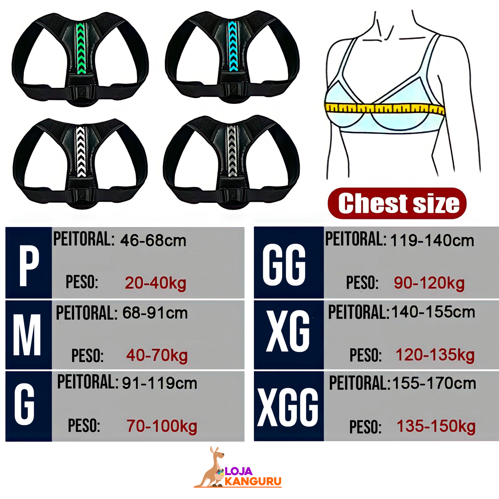 O Corretor fornece suporte de postura clavicular para todas as atividades, incluindo trabalhar, levantar e sentar na sua mesa de computador. Alinha corretamente sua postura tirando pressão da suas costas, aliviando assim a dor nas costas, pescoço, ombro e clavícula.